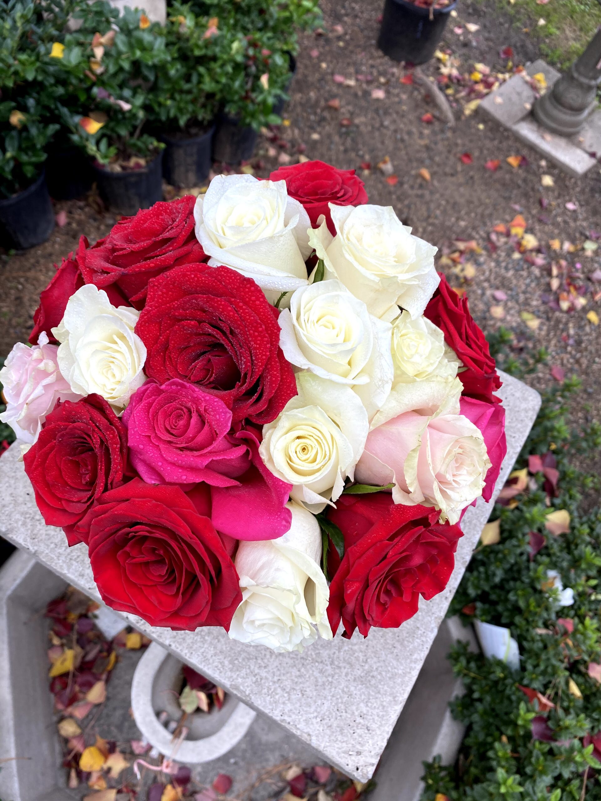 This beautiful low bowl full of the most amazing roses is perfect for every occasion. It is sure to put a smile on the face of anyone who receives it!